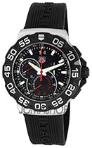 Stainless steel case with a black rubber bracelet. Unidirectional rotating titanium-carbide coated bezel. Black guilloche dial with luminous hands and index hour markers. Minute markers. tachymeter scale around the outer rim. Luminescent hands and markers. Date displays at the 12 o'clock position. Three - 60 seconds 60 minutes and 1/10th of a second. Quartz ronda 5040b movement. Scratch resistant sapphire crystal. Screw down fluted crown. Stainless steel case back. Case diameter: 44 mm. Case thickness: 12.7 mm. Deployment clasp. Water resistant at 200 meters / 660 feet. Functions: hours minutes seconds chronograph. Tag Heuer Formula 1 Chronograph Men's Watch CAH1010.FT6026.