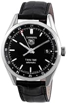 TAG Heuer Men's WV2115.FC6180 Carerra Calibre 7 Twin Time Automatic Black Dial Black Crocodile Watch